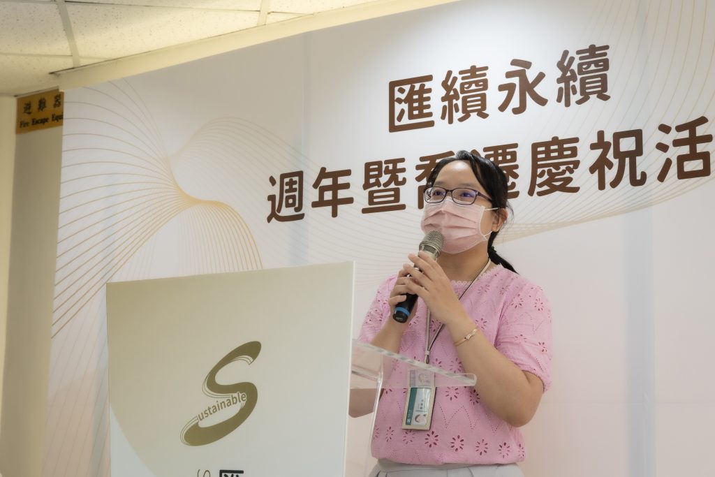 多位與總經理有深厚交情的貴賓朋友也先後上台致詞,包括易境永續設計顧問有限公司的吳佳玲經理、伸興工業股份有限公司的曾善美副理,以及高雄美國學校Emma計畫總監,分別分享了對匯續的鼓勵與期許。其中更感謝的是,Emma計畫總監代表頒贈匯續一座獎盃,肯定匯續在永續推動上的努力與貢獻,全場報以熱烈掌聲,現場氣氛倍感磅礡。