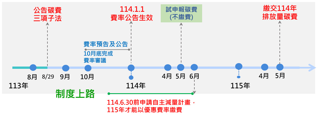 碳費申報(即「碳費申報」)關鍵時程與流程如下:
